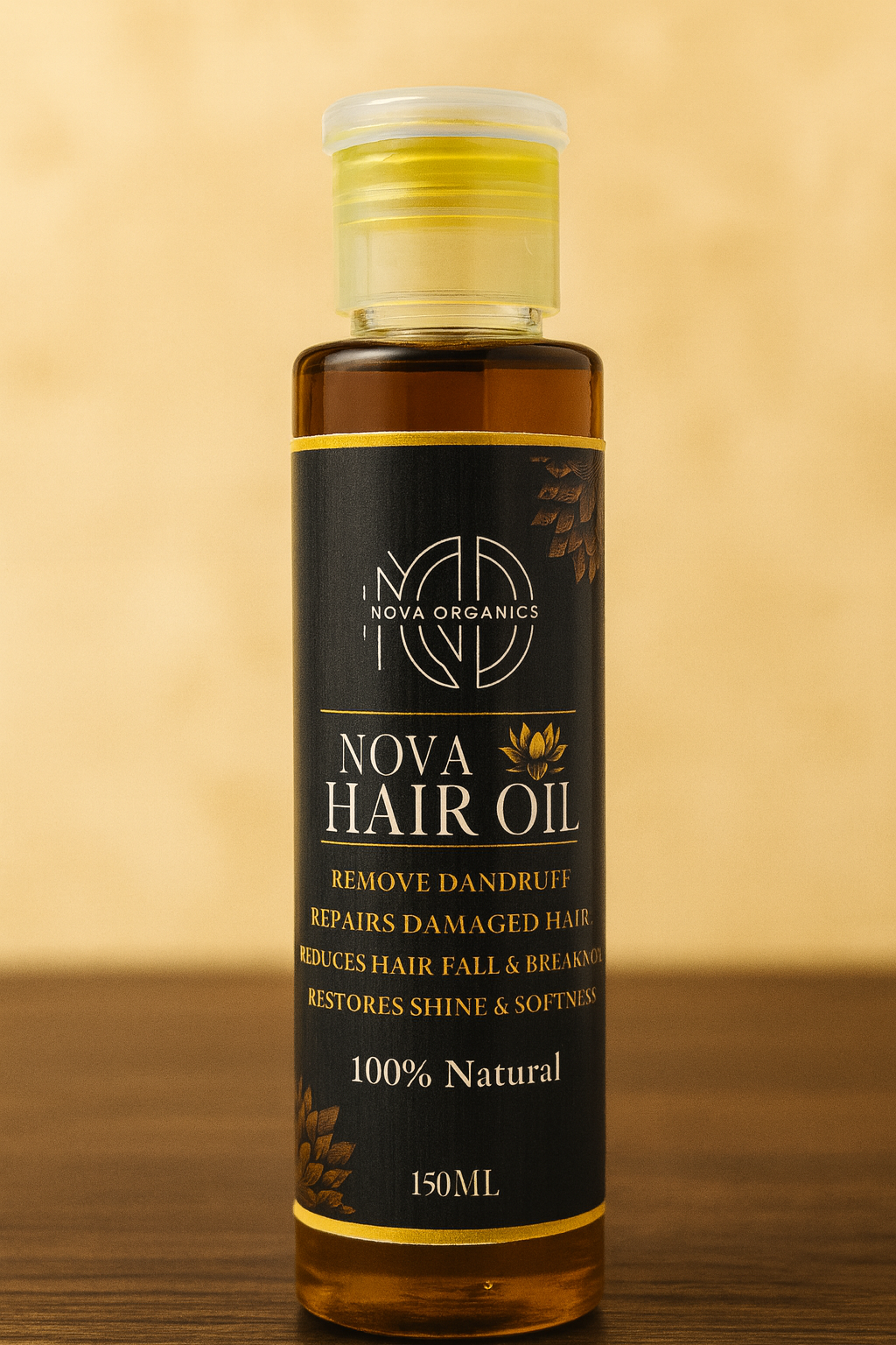 Nova Organics works against dandruff by using natural anti-fungal and anti-inflammatory oils like Black Seed, Amla, and Rosemary. These ingredients help reduce flakes, clean scalp buildup, soothe itching, and restore scalp health, preventing dandruff from returning.